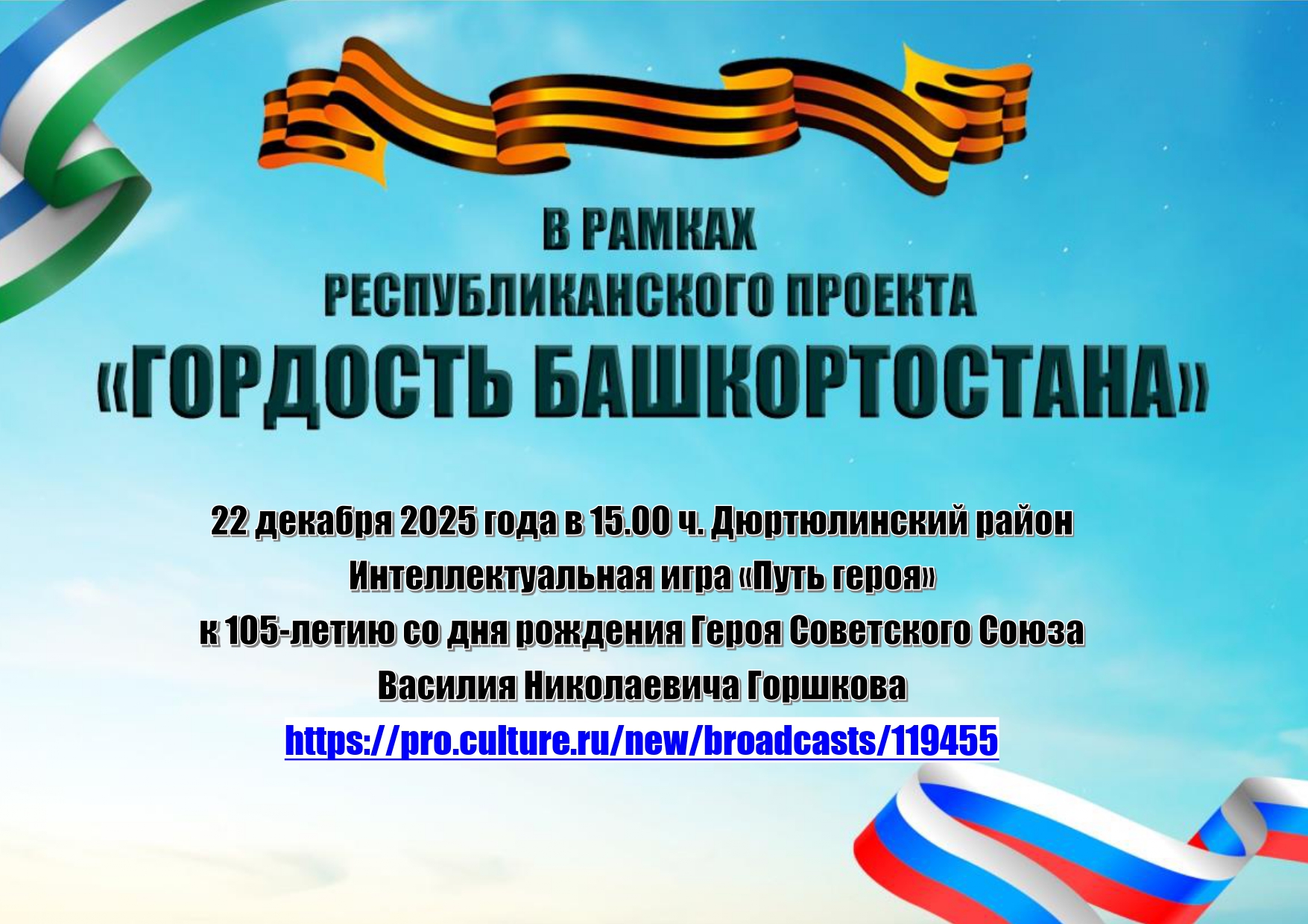 Это значимое событие, посвящённое 105-летию со дня рождения Василия Николаевича Горшкова, проходит в рамках республиканского проекта «Гордость Башкортостана», объединяя молодёжь вокруг важных исторических дат.